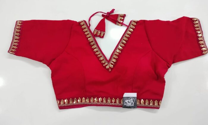 Red Color Mid Hand Designer Blouse