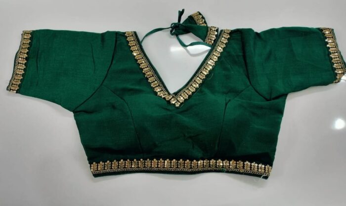 Green Color Mid Hand Designer Blouse